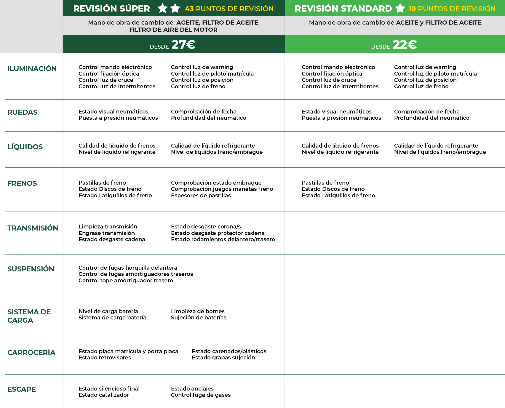 Pode contratar a revisão de mota Standard, na qual se verificam 19 pontos, ou a revisão de mota